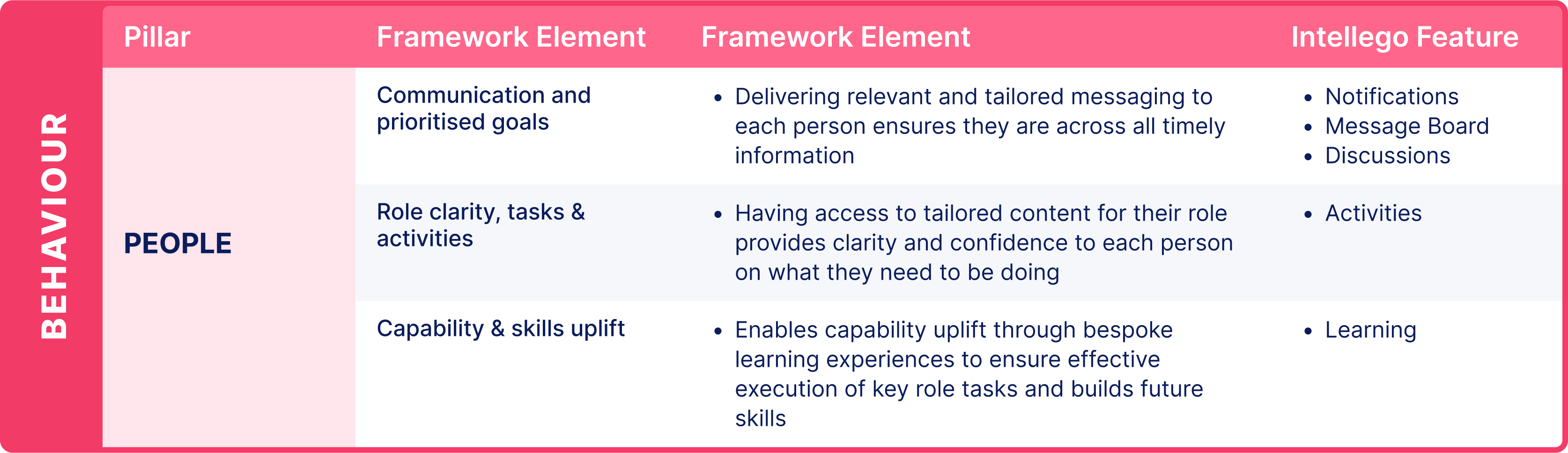 Prior to implementing any new platform within an organisation, such as a learning and performance platform like intellego, it is crucial to thoroughly understand our client’s organisational goals. This involves devising an implementation plan that prioritises aligning people, processes, and technology toward those goals, ensuring everyone is on the same page.