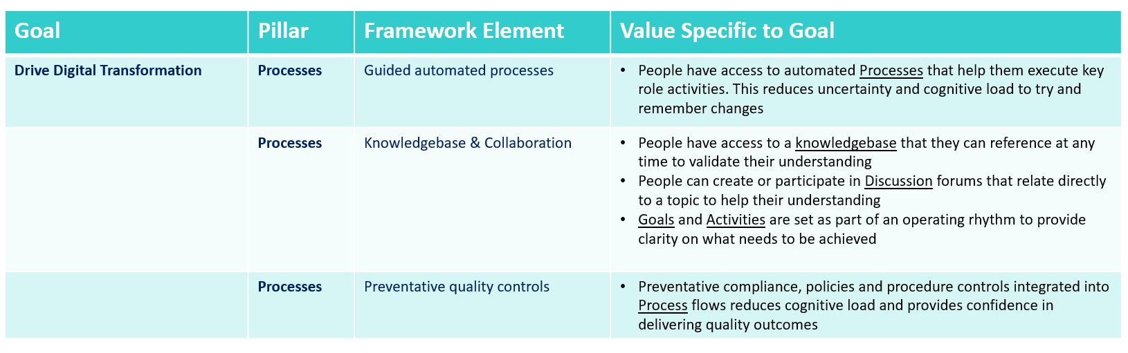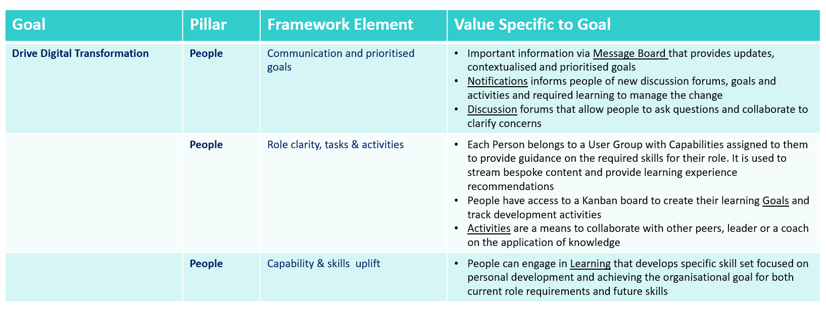 Lets take an example of an organisation objective of digital transformation and how aligning organisation drivers can make a significant impact on outcomes.